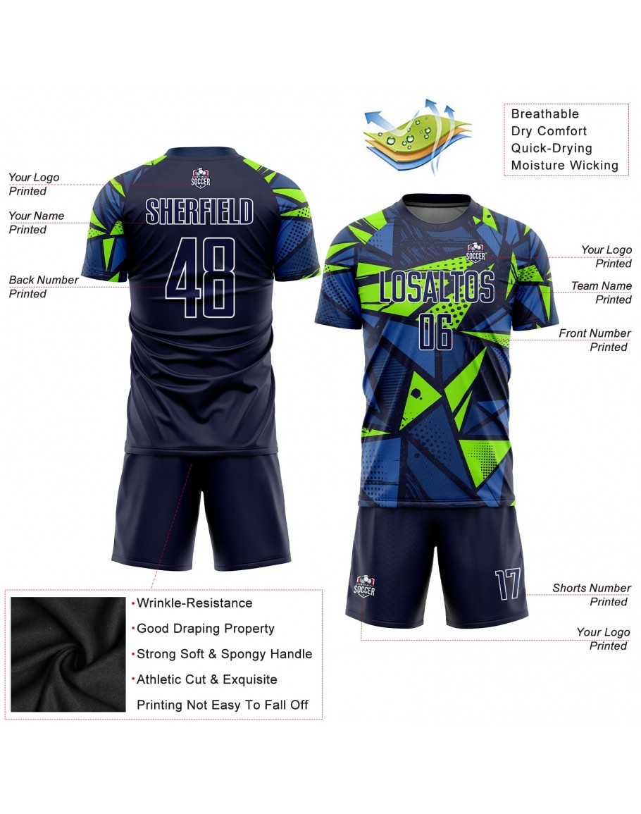 Best Pro Custom Navy Navy-Neon Green Sublimation Soccer Uniform Jersey
