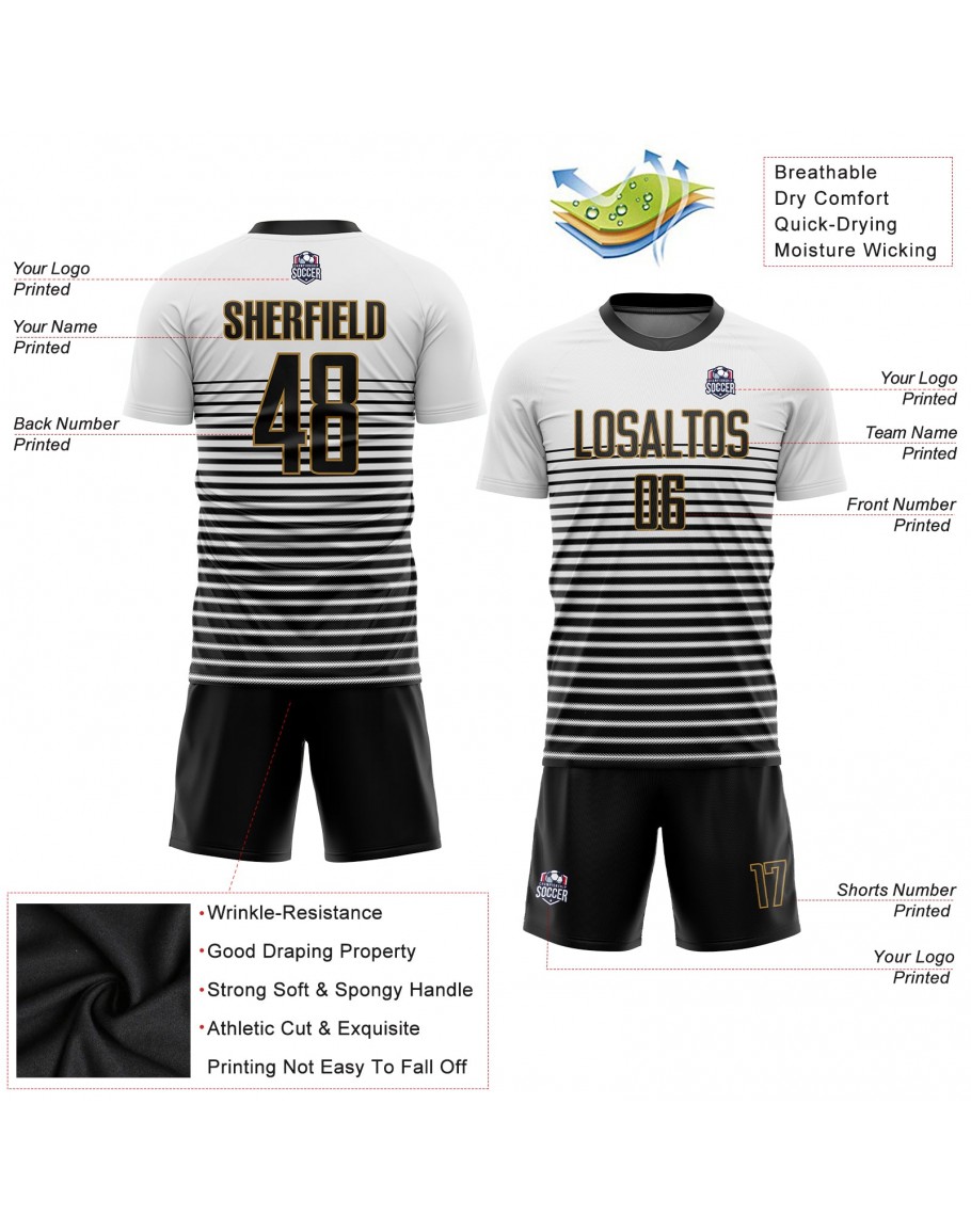 Custom White Black-Old Gold Sublimation Soccer Uniform Jersey