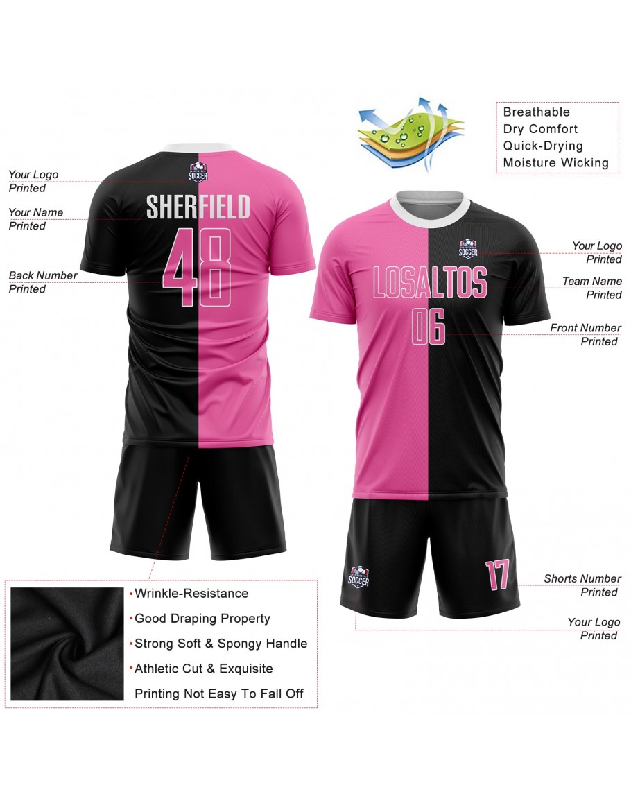 Custom Black Pink-White Sublimation Split Fashion Soccer Uniform Jersey