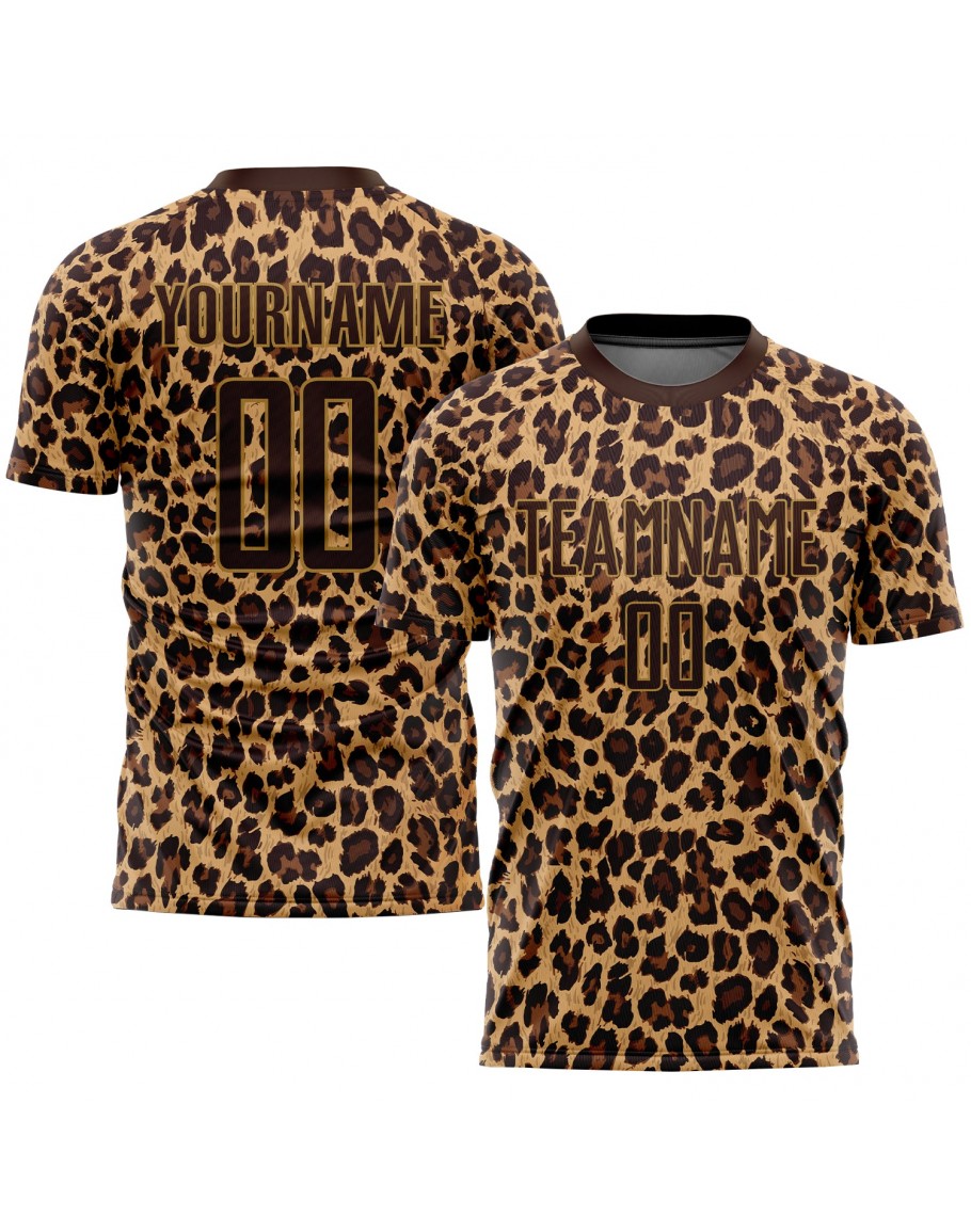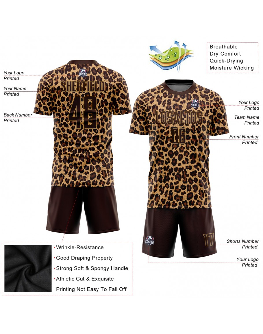Custom Brown Brown-Old Gold Sublimation Leopard Soccer Uniform Jersey