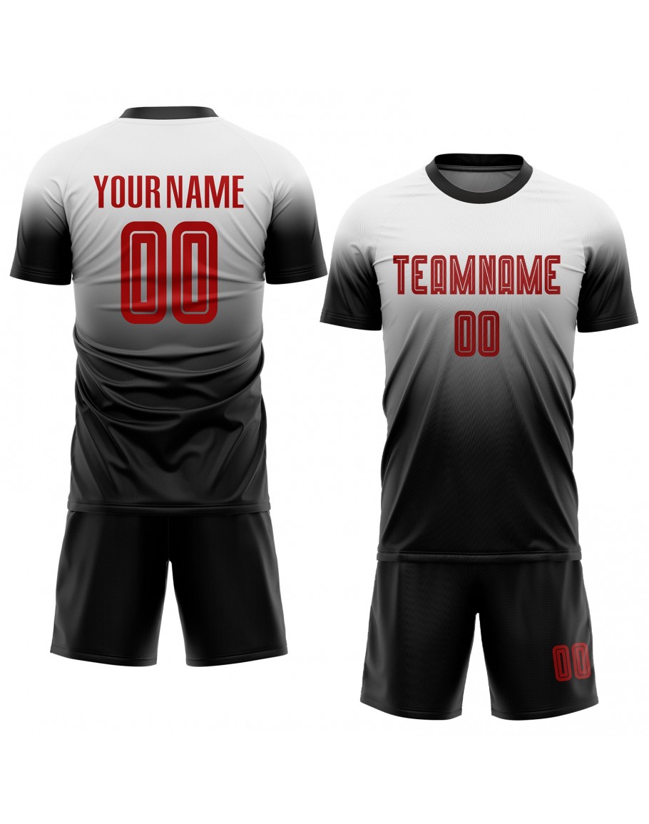 Best Pro Custom White Red-Black Sublimation Fade Fashion Soccer Uniform Jersey