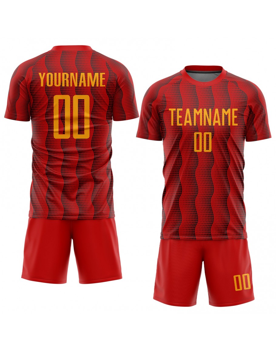 Custom Red Gold Sublimation Soccer Uniform Jersey