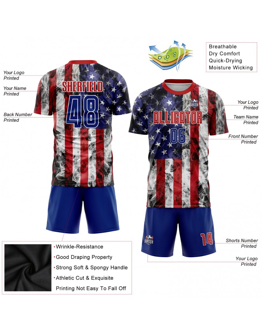 Custom White Royal-Red American Flag Fashion Sublimation Soccer Uniform Jersey