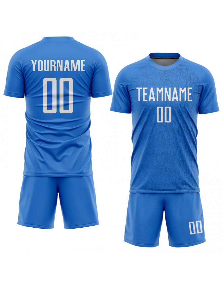 Custom Light Blue White Sublimation Soccer Uniform Jersey