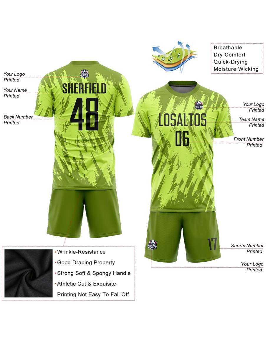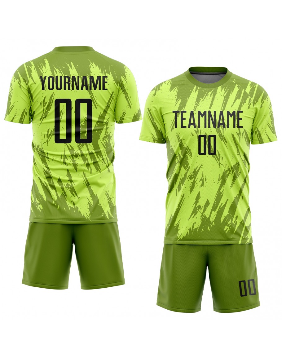 Best Pro Custom Neon Green Black-Olive Sublimation Soccer Uniform Jersey