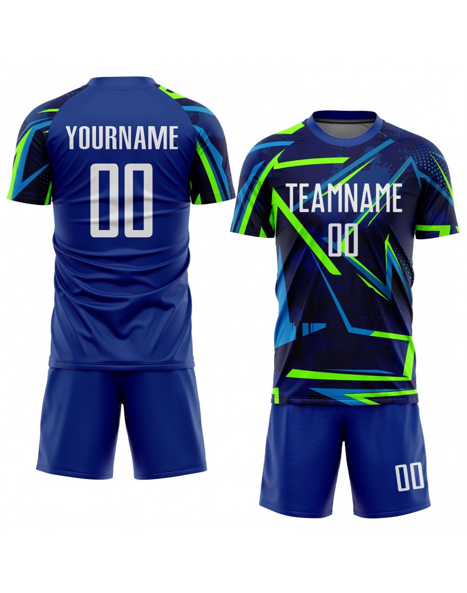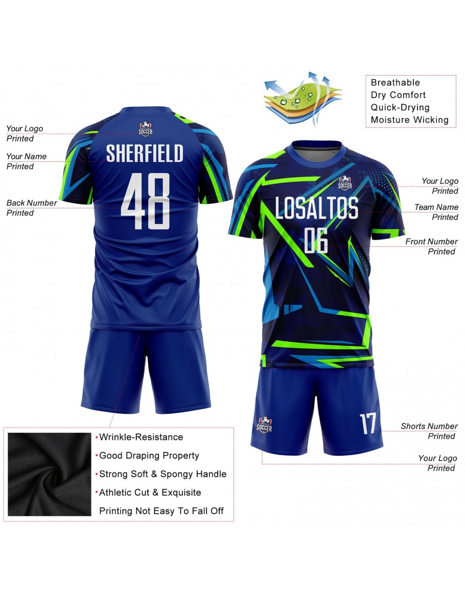 Custom Royal White-Neon Green Sublimation Soccer Uniform Jersey