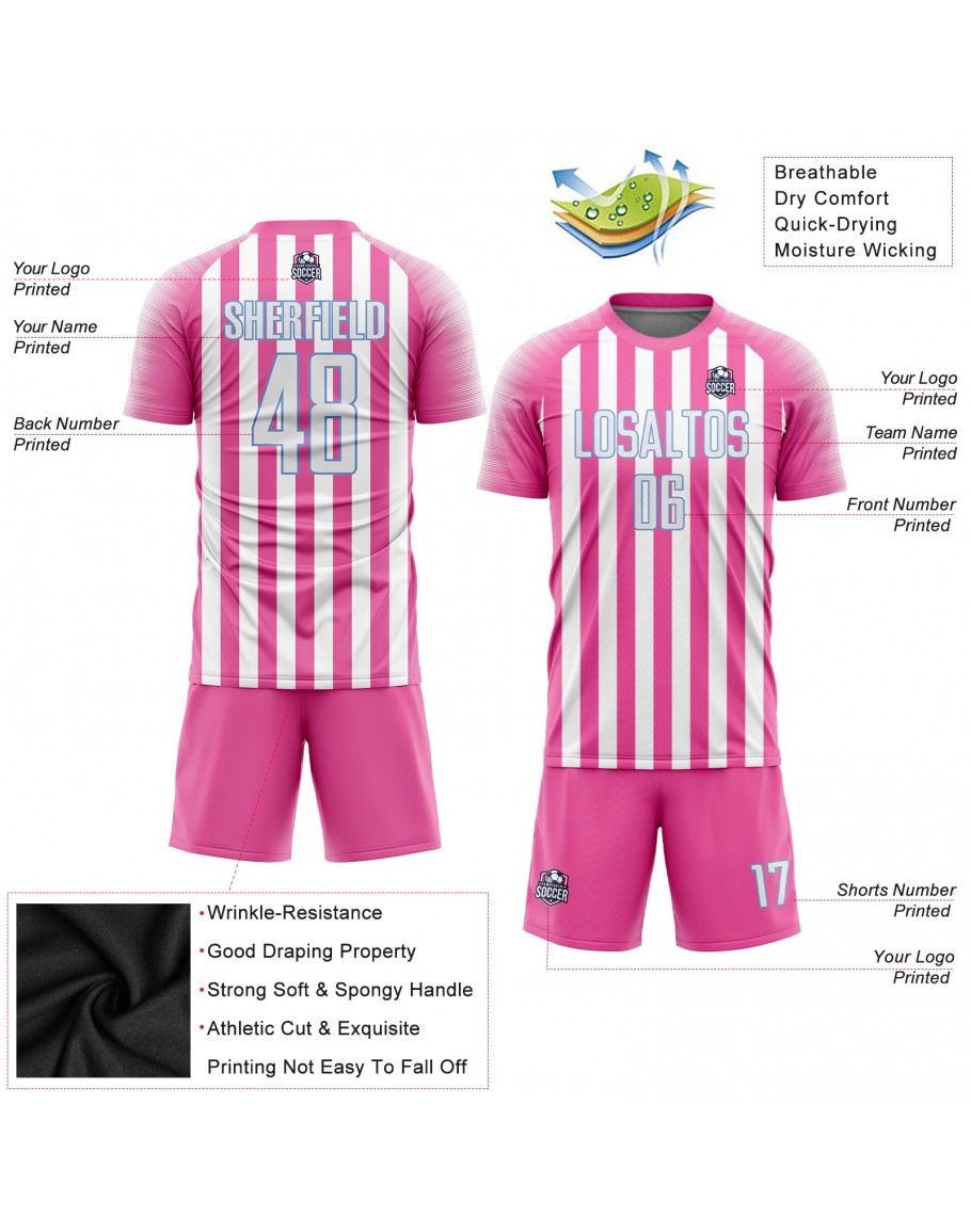 Custom Pink White-Light Blue Sublimation Soccer Uniform Jersey