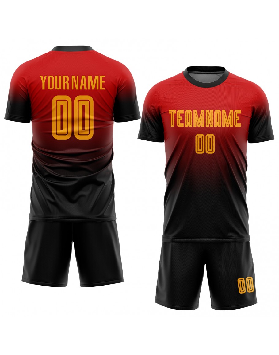 Custom Red Gold-Black Sublimation Fade Fashion Soccer Uniform Jersey