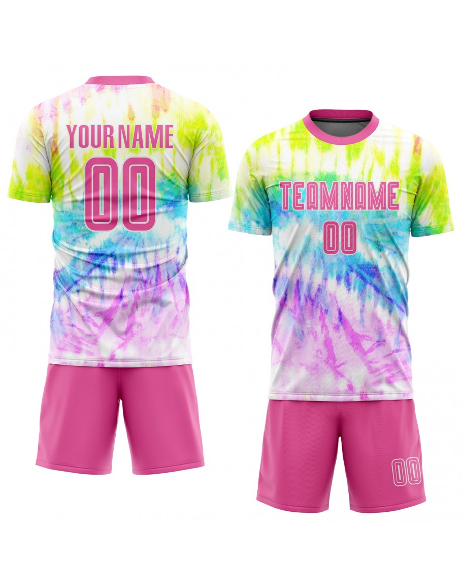 Custom Tie Dye Pink-White Sublimation Soccer Uniform Jersey