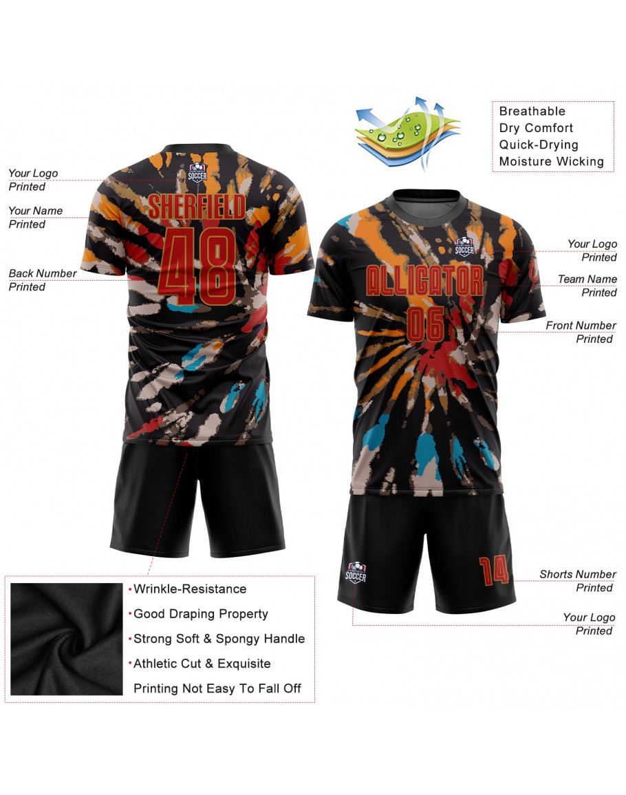 Best Pro Custom Tie Dye Red-Old Gold Sublimation Soccer Uniform Jersey