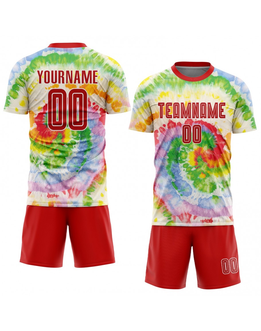 Best Pro Custom Tie Dye Red-White Sublimation Soccer Uniform Jersey