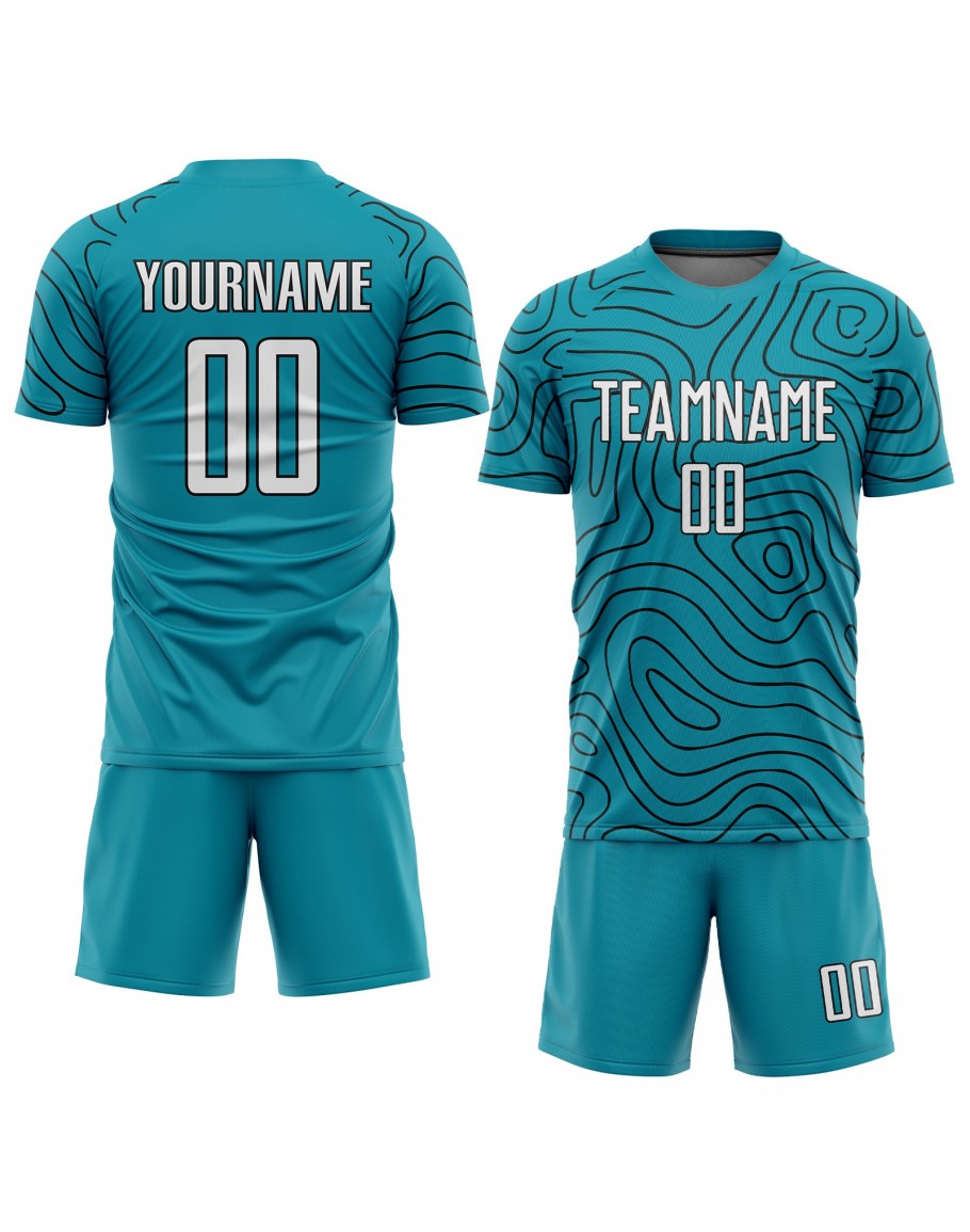 Best Pro Custom Teal White-Black Green Sublimation Soccer Uniform Jersey