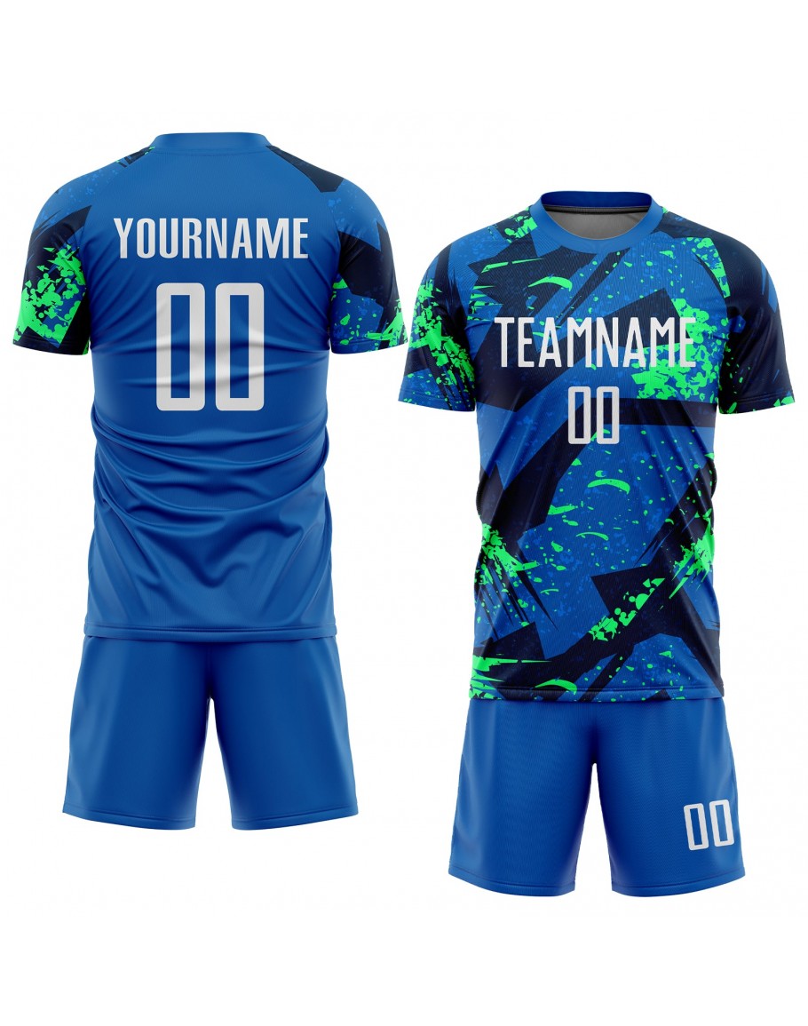 Custom Royal White-Neon Green Sublimation Soccer Uniform Jersey