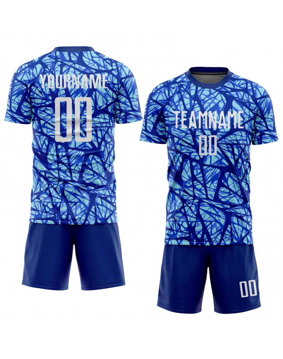 Custom Royal White-Light Blue Sublimation Soccer Uniform Jersey