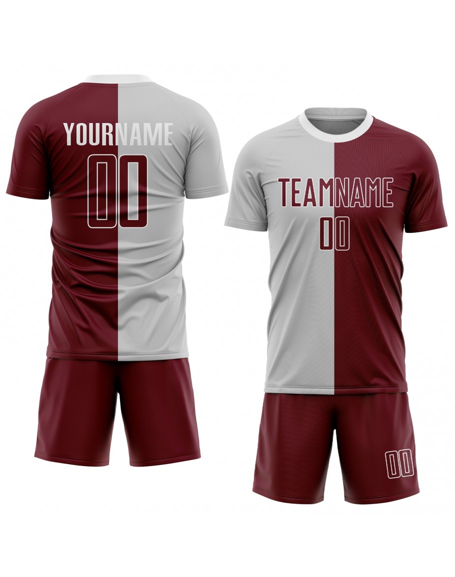 Best Pro Custom Gray Crimson-White Sublimation Split Fashion Soccer Uniform Jersey