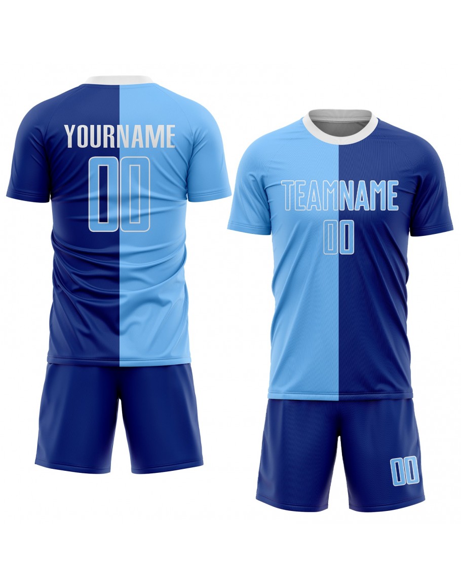 Best Pro Custom Royal Light Blue-White Sublimation Split Fashion Soccer Uniform Jersey