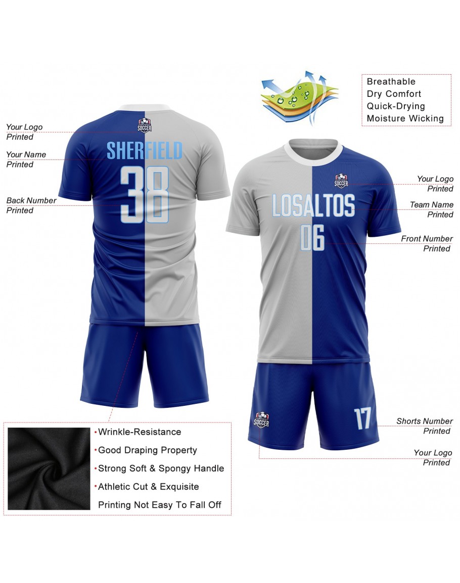 Best Pro Custom Royal White-Gray Sublimation Split Fashion Soccer Uniform Jersey