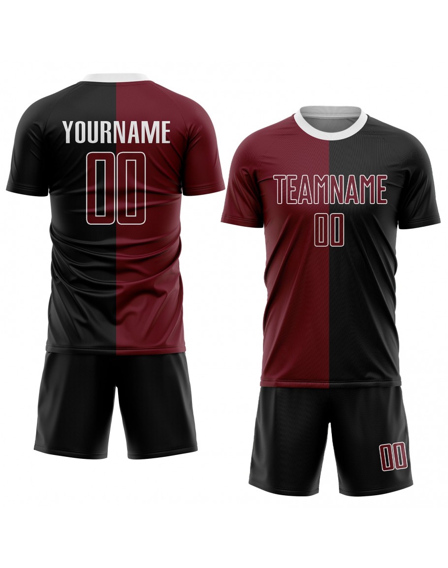 Best Pro Custom Black Crimson-White Sublimation Split Fashion Soccer Uniform Jersey