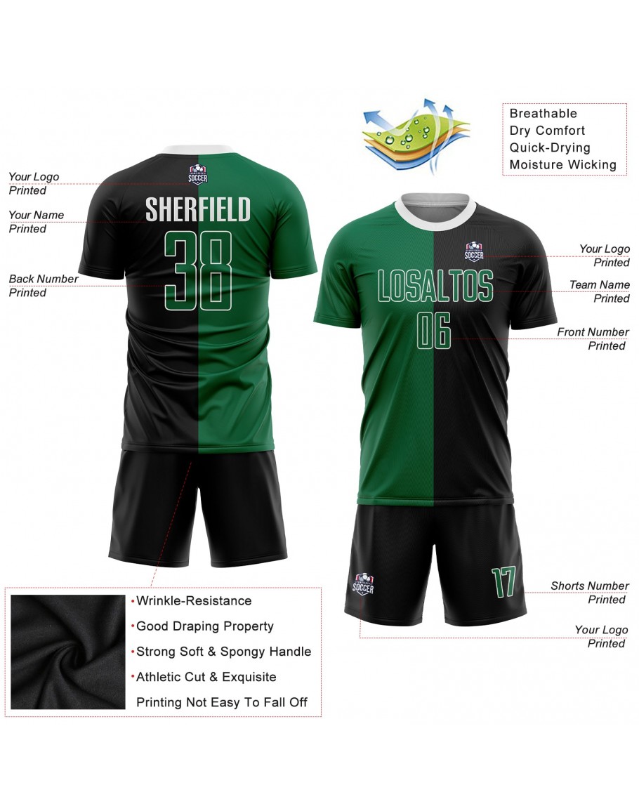 Best Pro Custom Black Kelly Green-White Sublimation Split Fashion Soccer Uniform Jersey