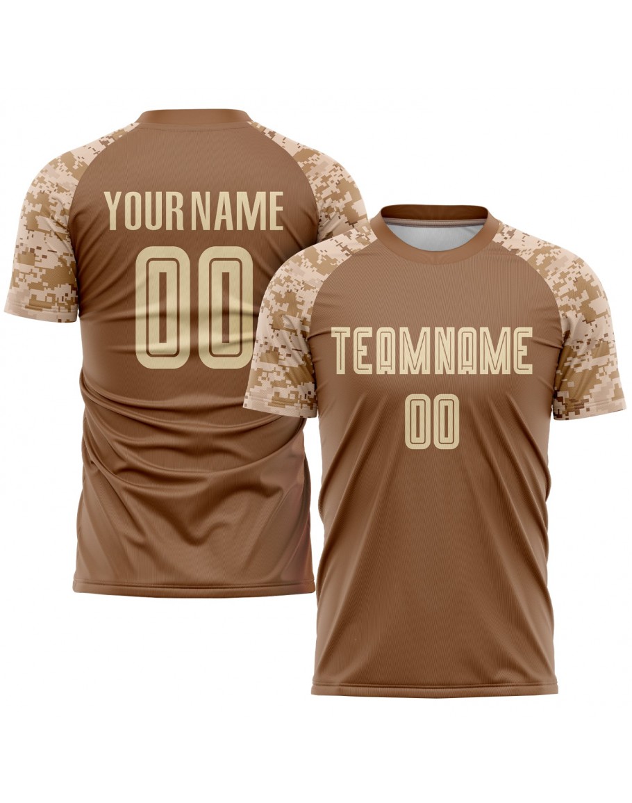 Custom Brown Cream-Camo Sublimation Soccer Uniform Jersey