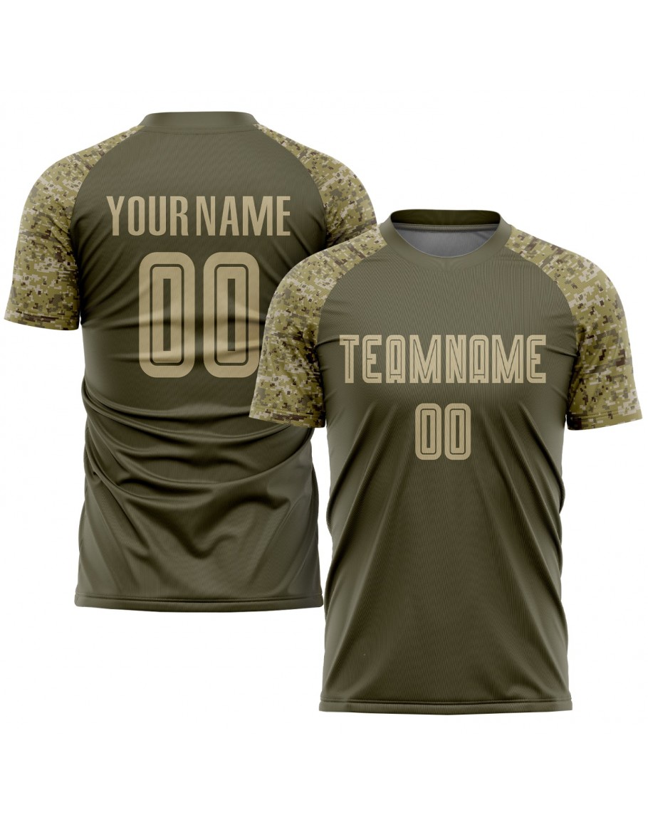 Best Pro Custom Olive Vegas Gold-Camo Sublimation Salute To Service Soccer Uniform Jersey