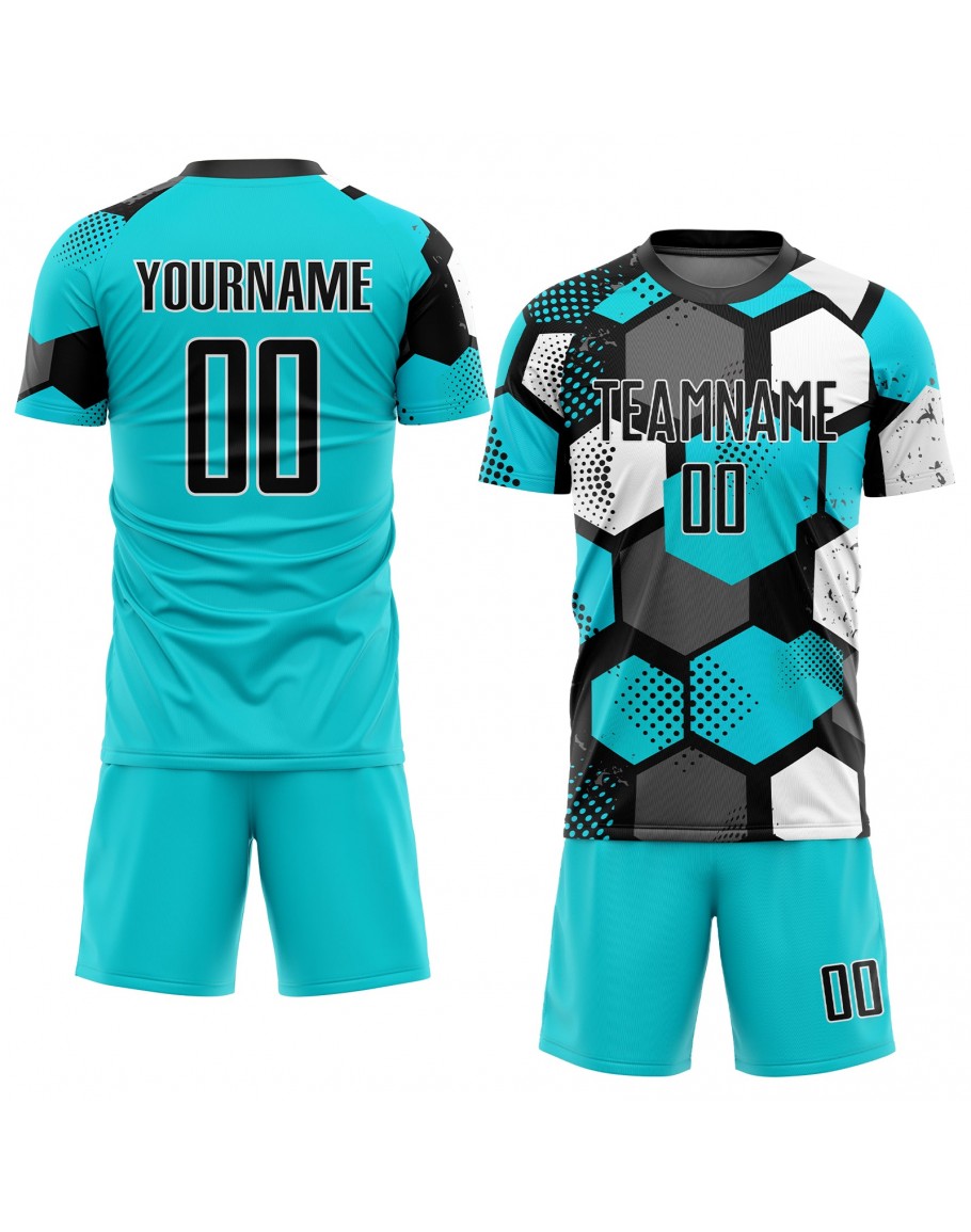 Best Pro Custom Aqua Black-White Sublimation Soccer Uniform Jersey