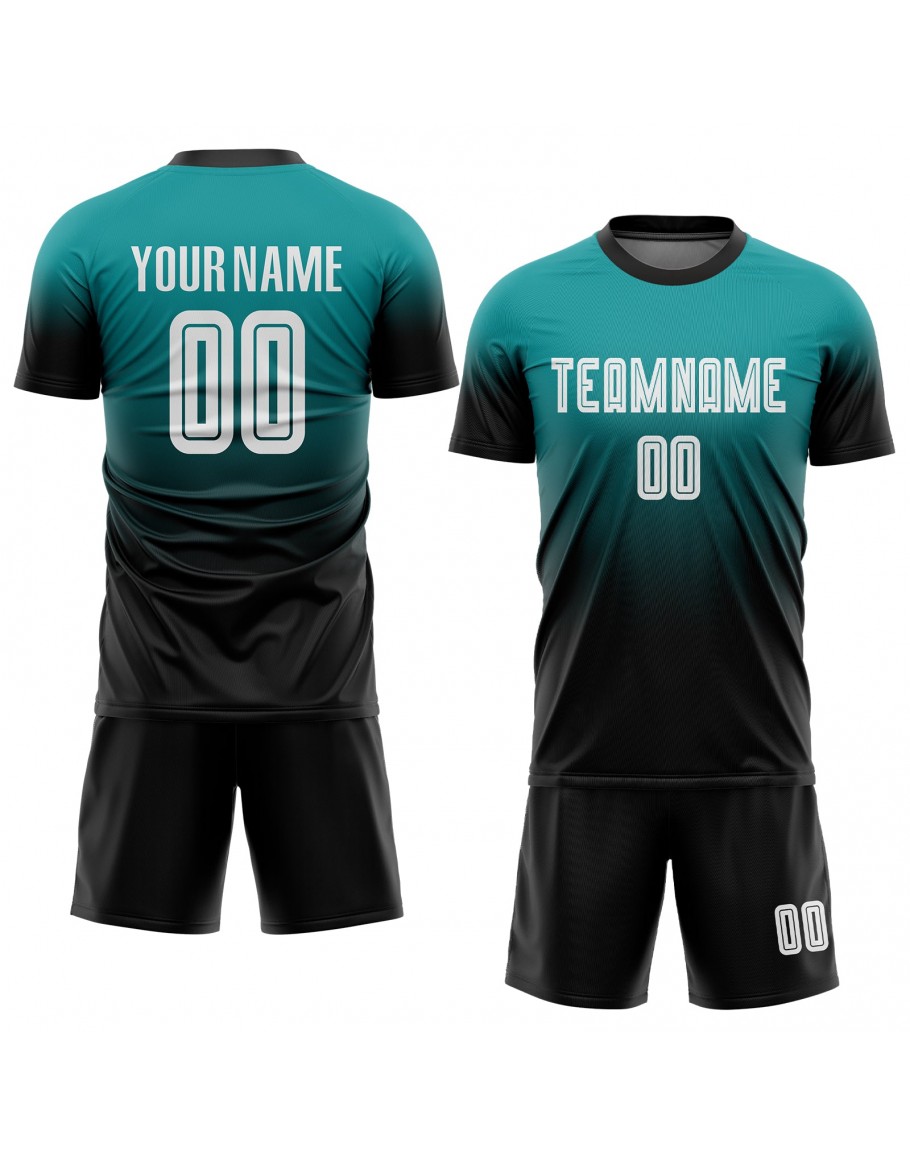 Best Pro Custom Aqua White-Black Sublimation Fade Fashion Soccer Uniform Jersey