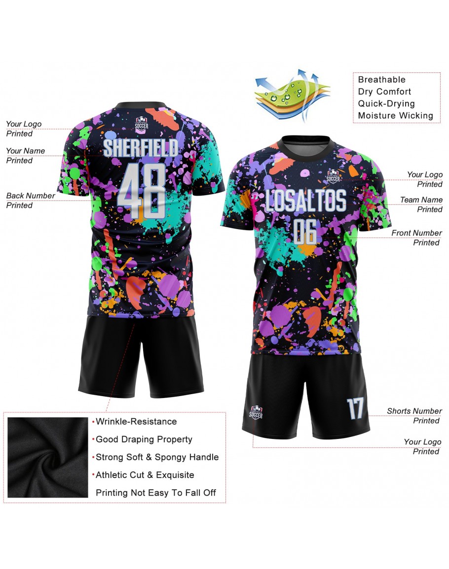 Best Pro Custom Graffiti Pattern White-Light Blue Sublimation Soccer Uniform Jersey