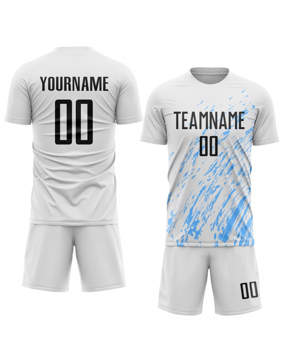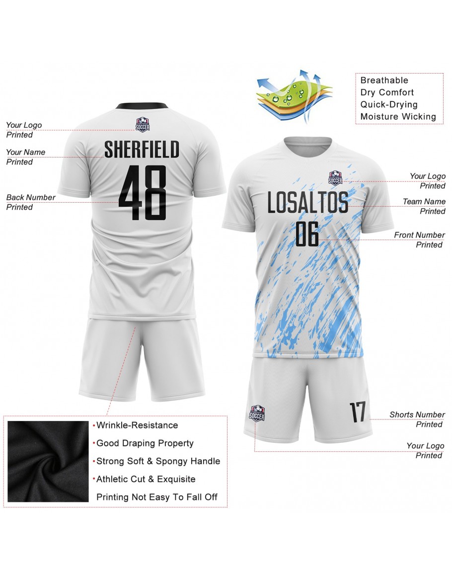 Best Pro Custom White Black-Light Blue Sublimation Soccer Uniform Jersey