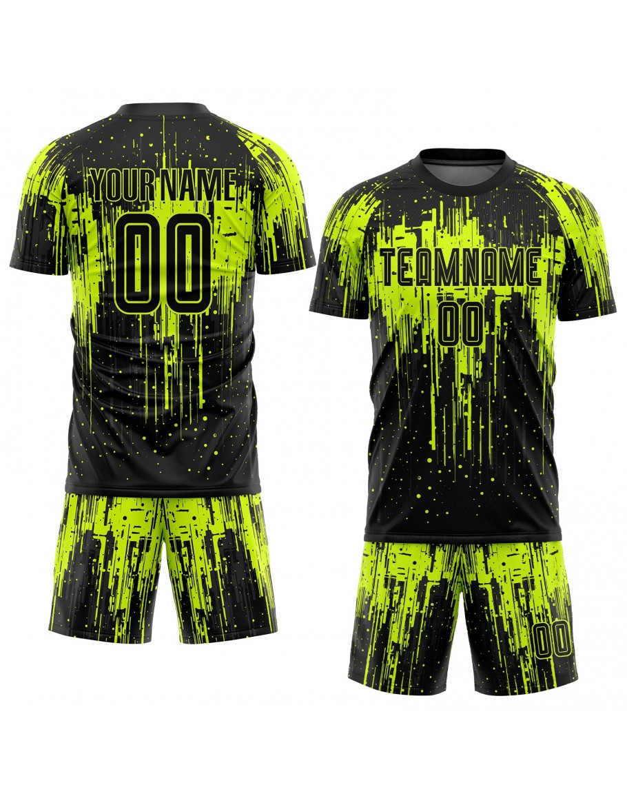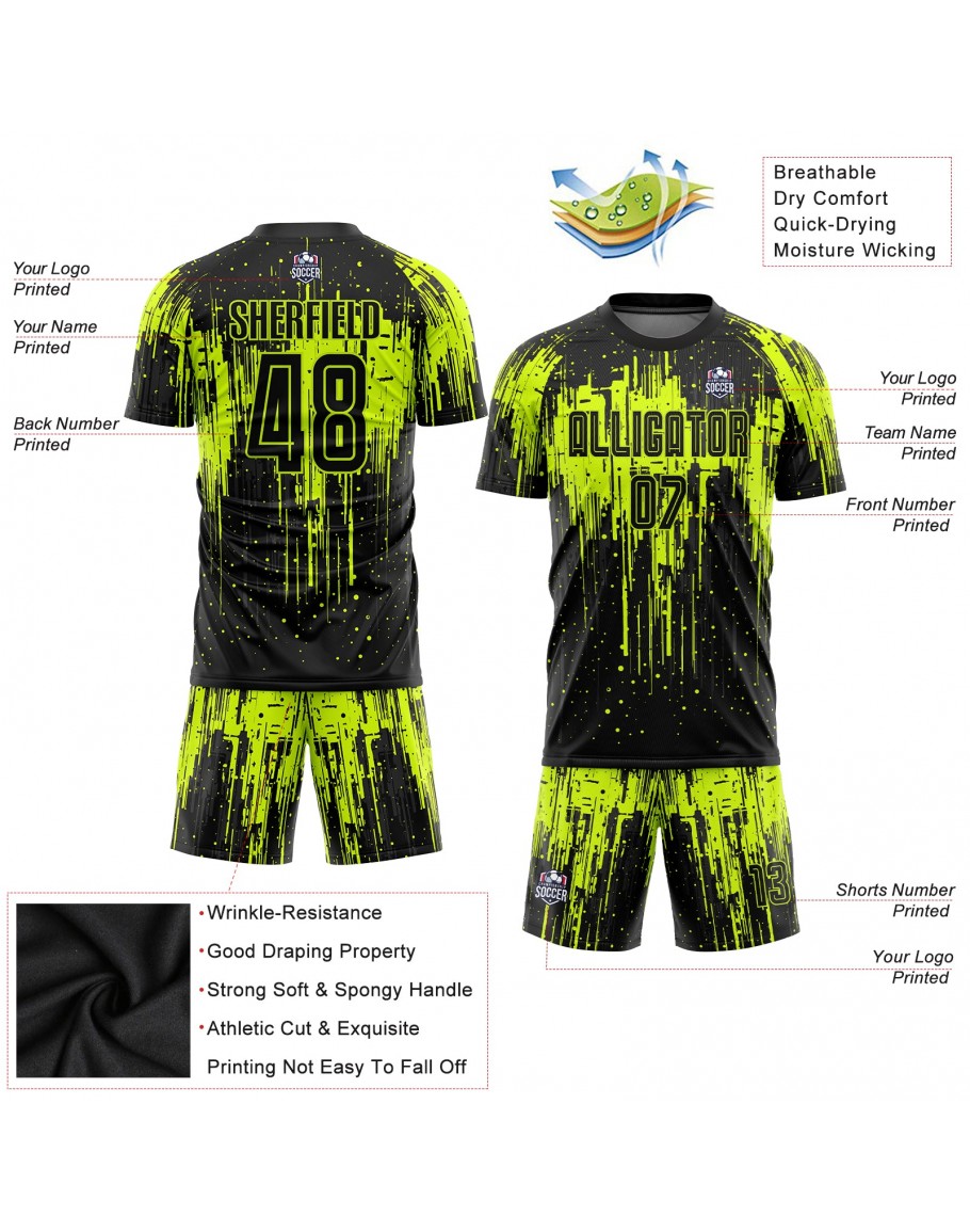 Custom Neon Green Black Sublimation Soccer Uniform Jersey