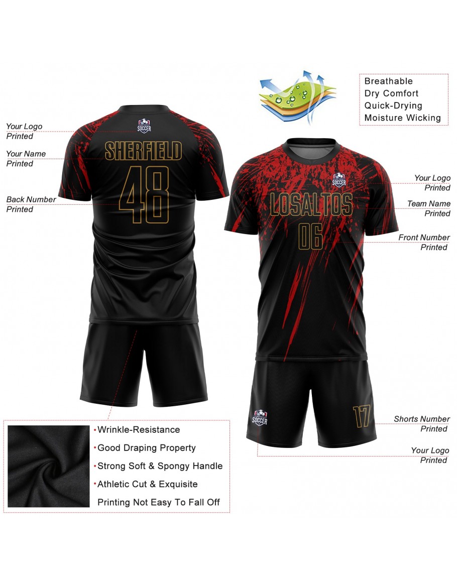 Custom Black Old Gold-Red Sublimation Soccer Uniform Jersey