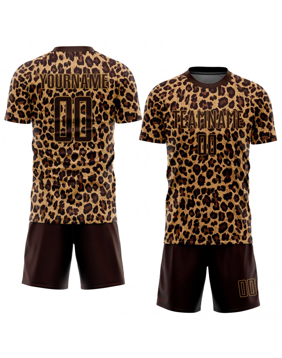Custom Brown Brown-Old Gold Sublimation Leopard Soccer Uniform Jersey