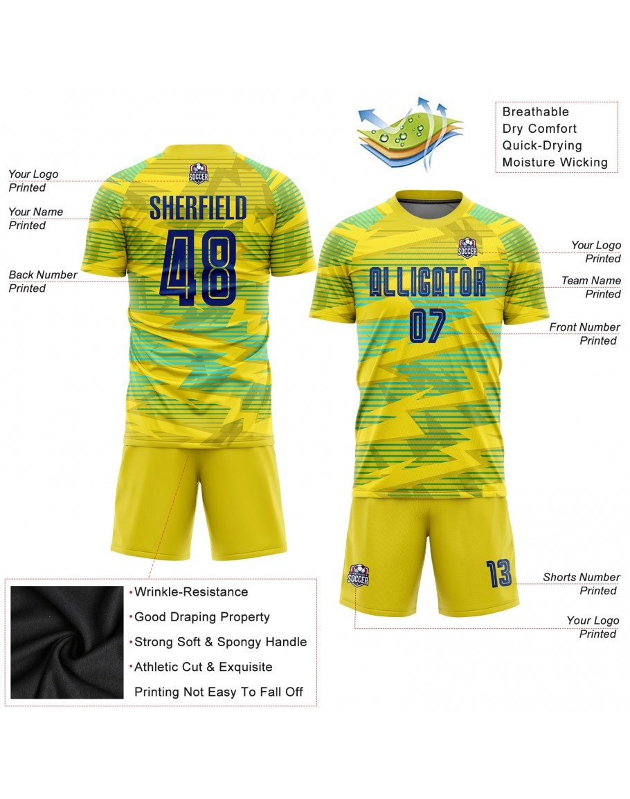 Custom Gold Royal-Light Blue Away Sublimation Soccer Uniform Jersey