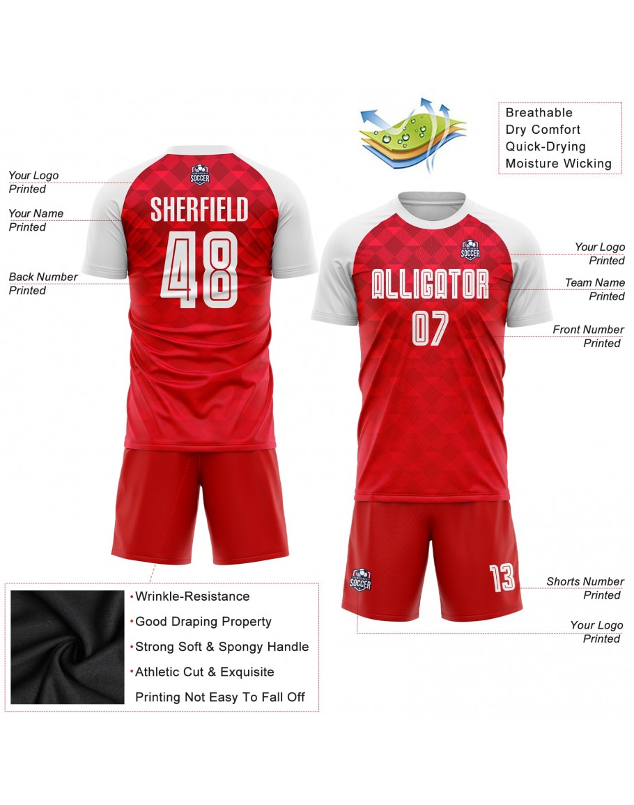 Custom Red White Away Sublimation Soccer Uniform Jersey