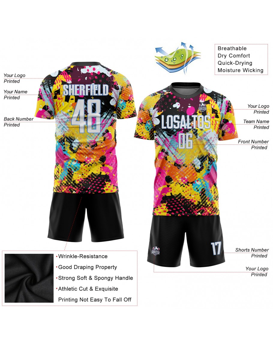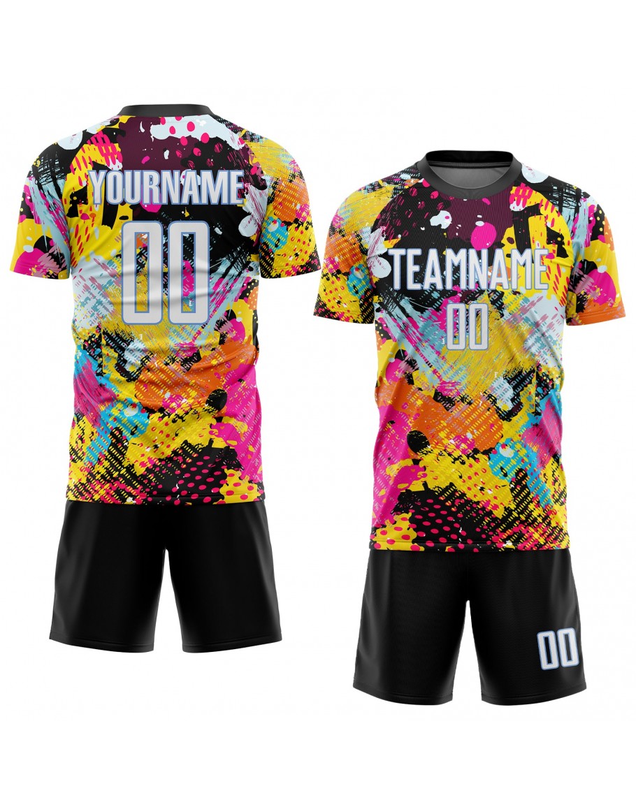 Best Pro Custom Graffiti Pattern White-Light Blue Sublimation Soccer Uniform Jersey