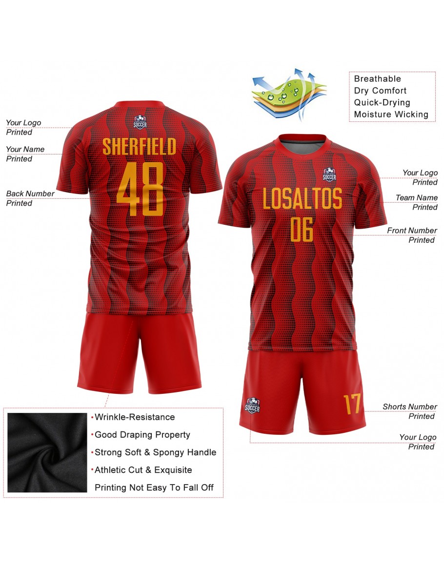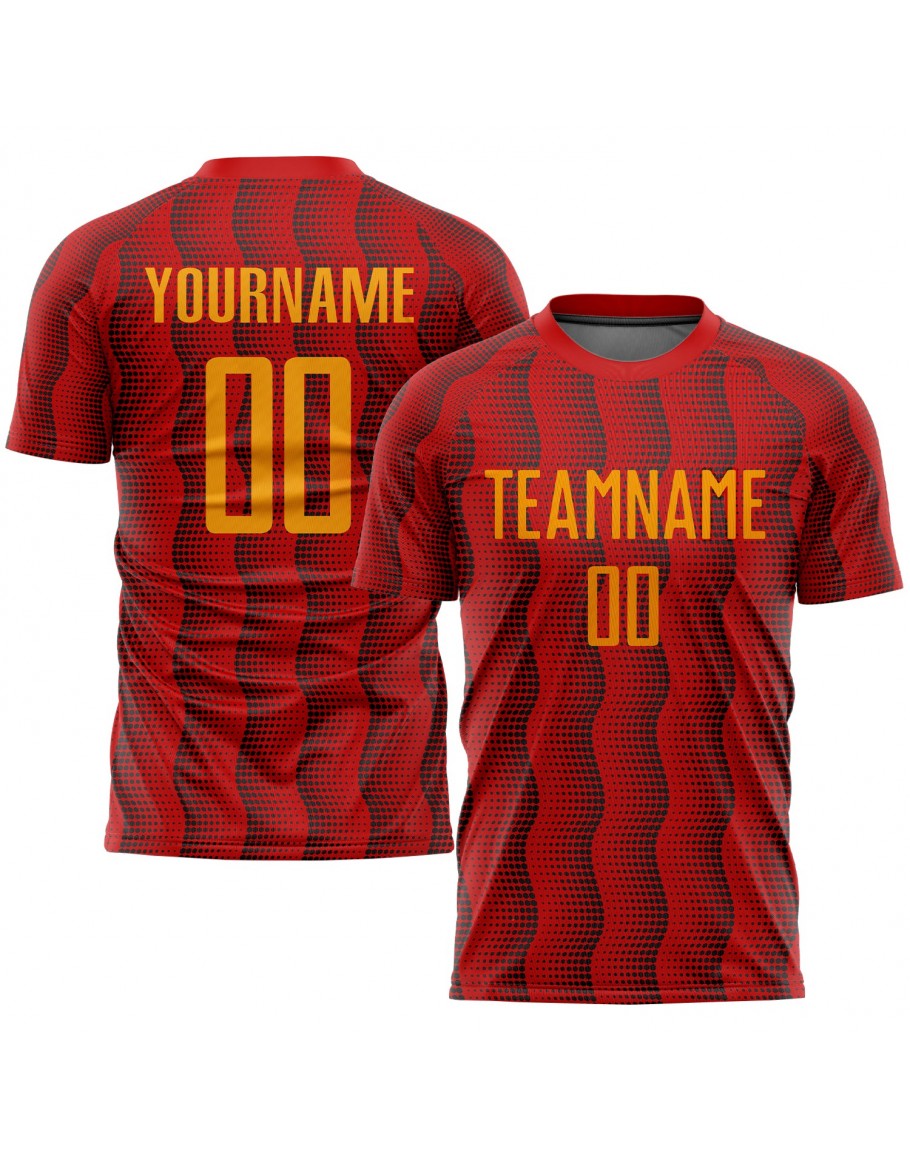 Custom Red Gold Sublimation Soccer Uniform Jersey