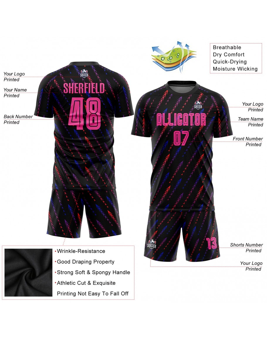 Best Pro Custom Black Pink-Orange Sublimation Soccer Uniform Jersey