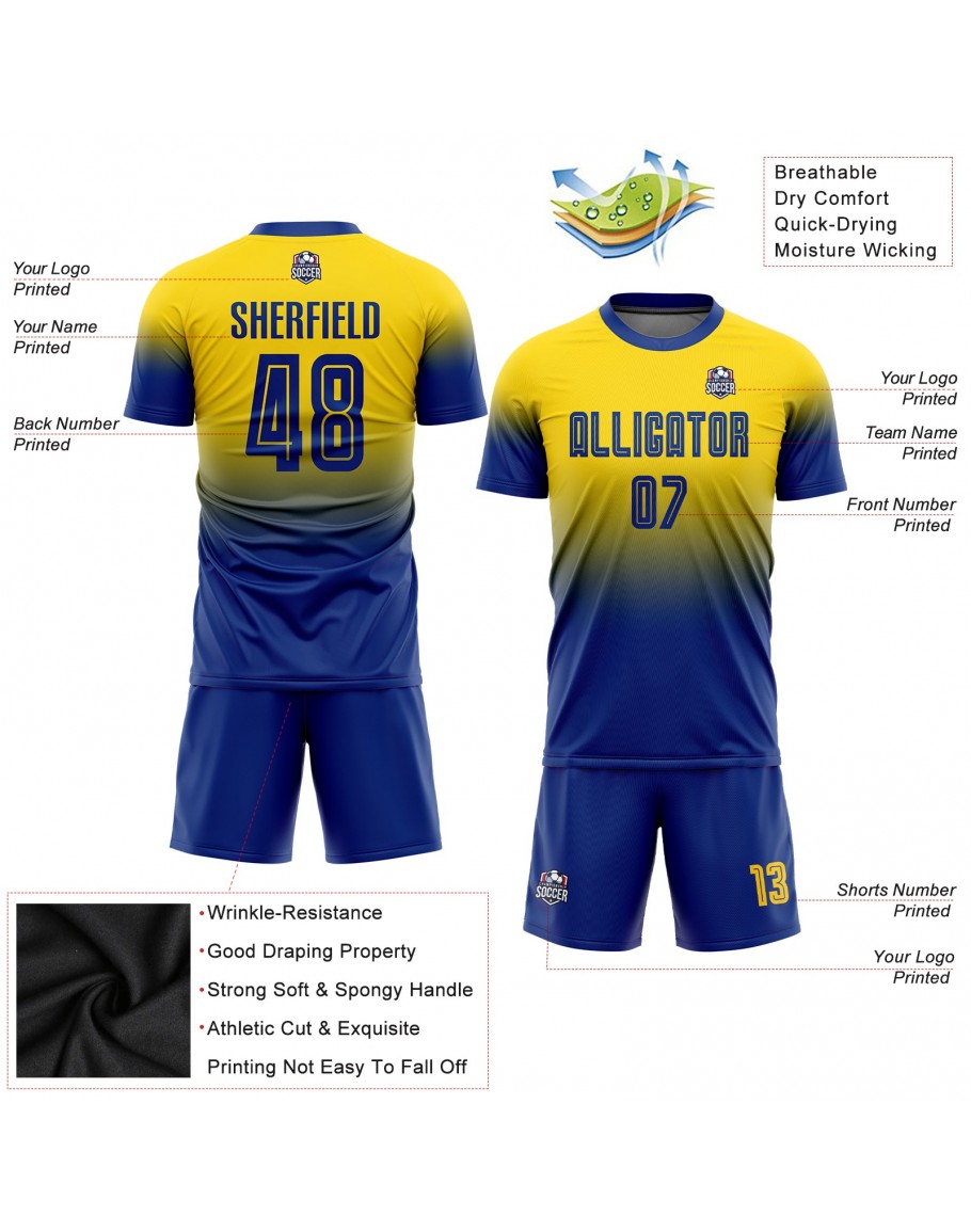 Custom Gold Royal Sublimation Fade Fashion Soccer Uniform Jersey