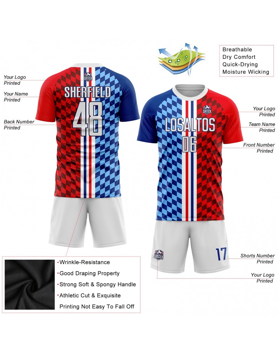 Best Pro Custom Figure White-Royal Sublimation Soccer Uniform Jersey