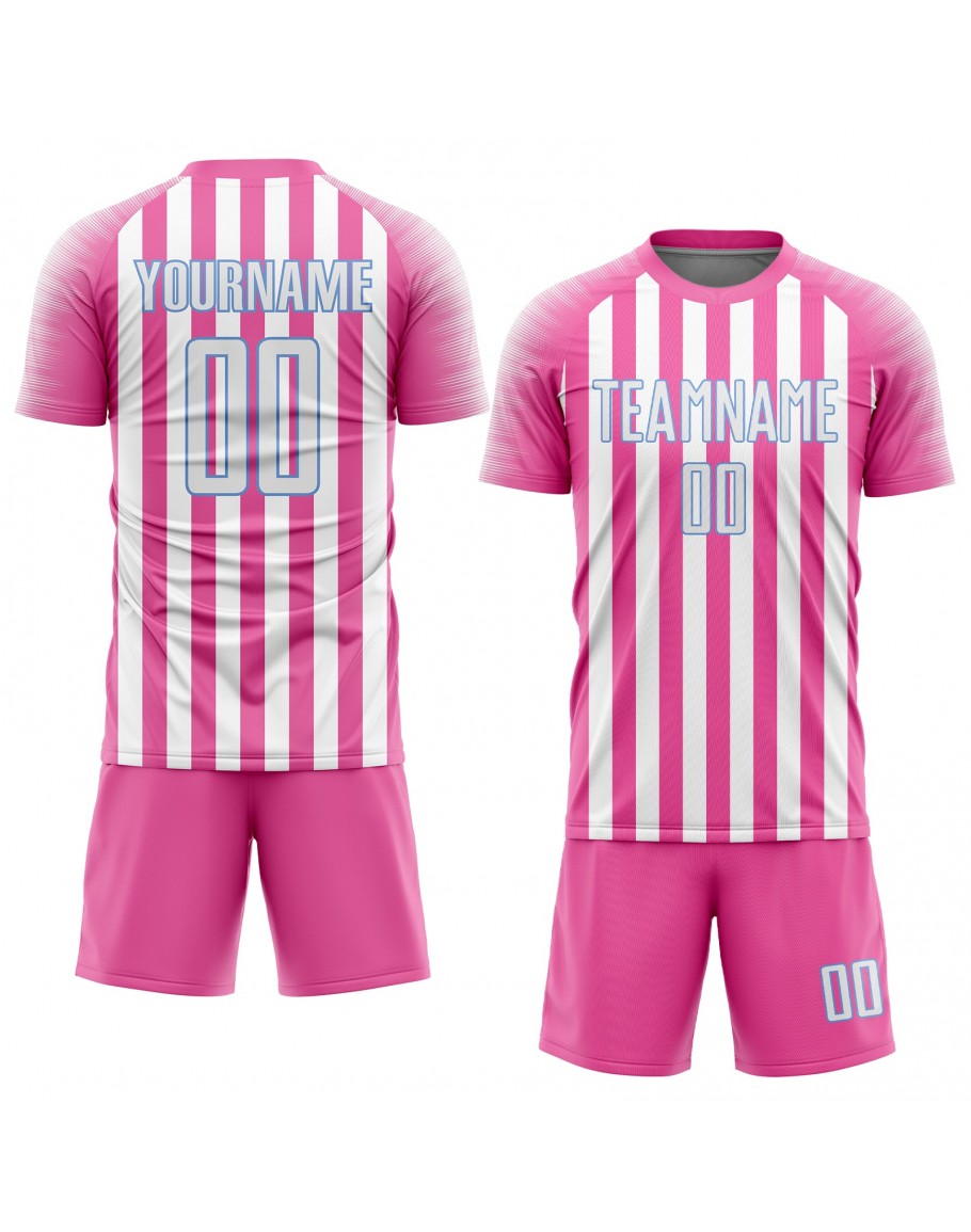 Custom Pink White-Light Blue Sublimation Soccer Uniform Jersey