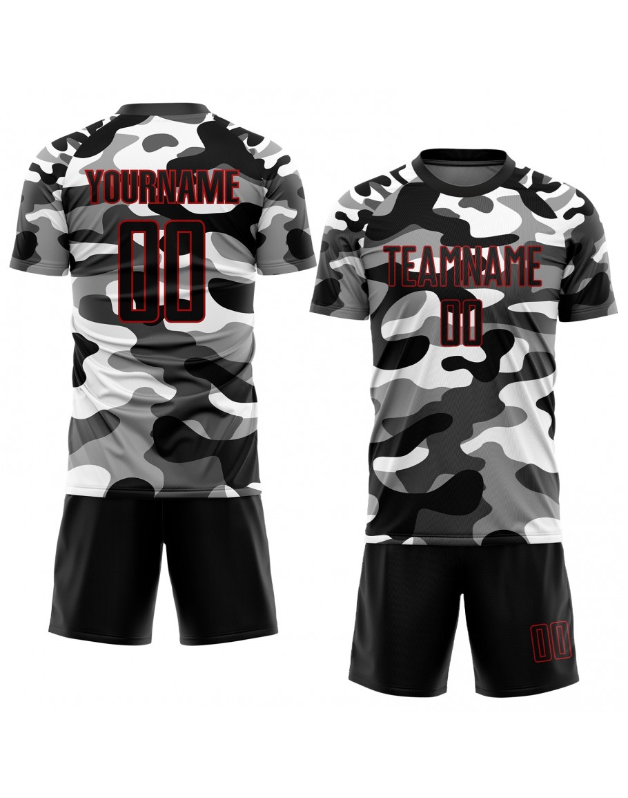 Custom Camo Black-Red Sublimation Salute To Service Soccer Uniform Jersey