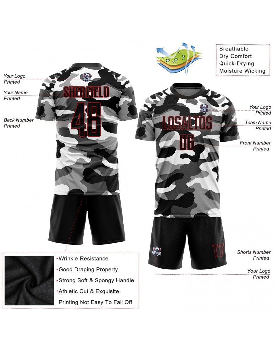 Best Pro Custom Camo Black-Red Sublimation Salute To Service Soccer Uniform Jersey