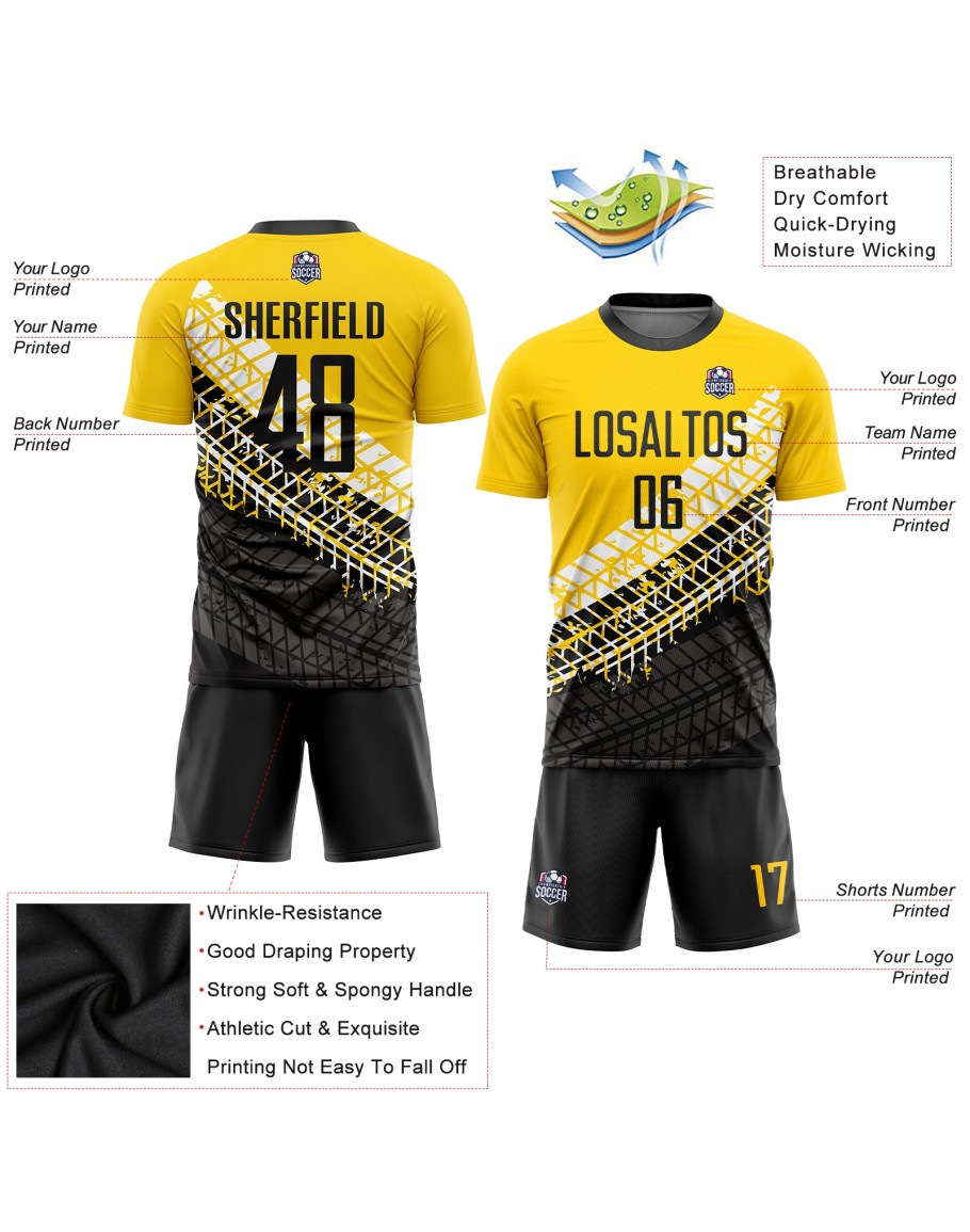 Custom Gold Black-White Sublimation Soccer Uniform Jersey