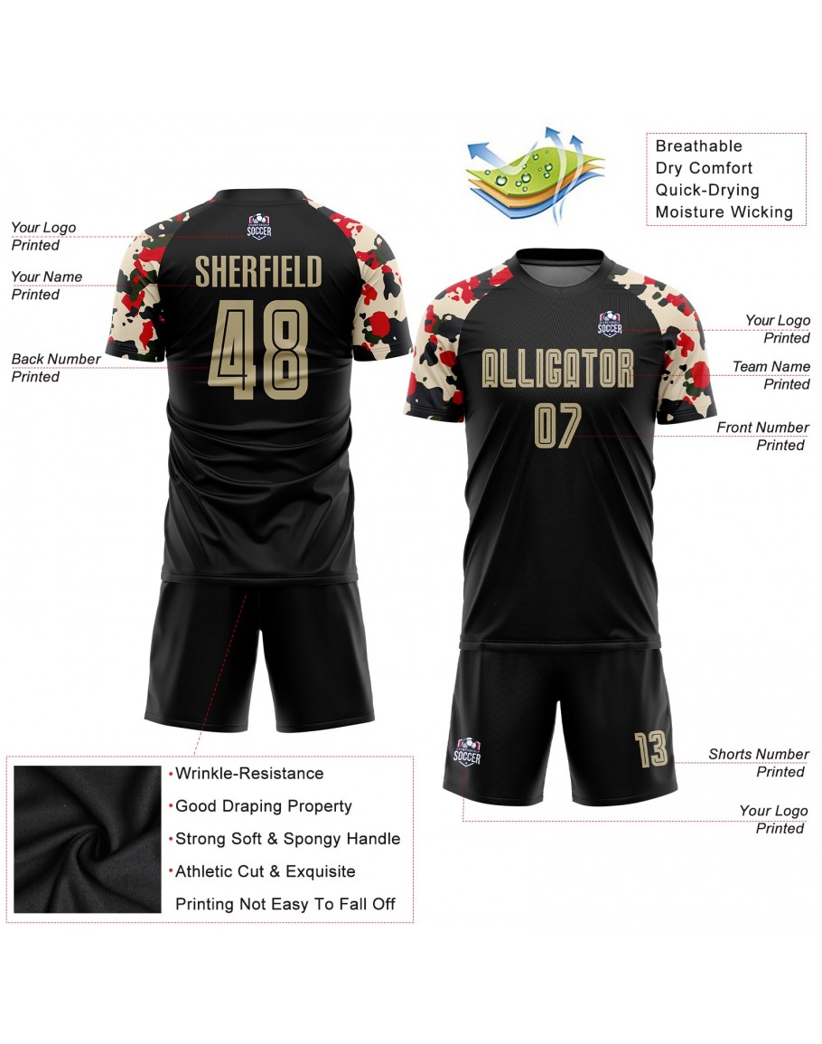 Best Pro Custom Black Vegas Gold-Camo Sublimation Soccer Uniform Jersey
