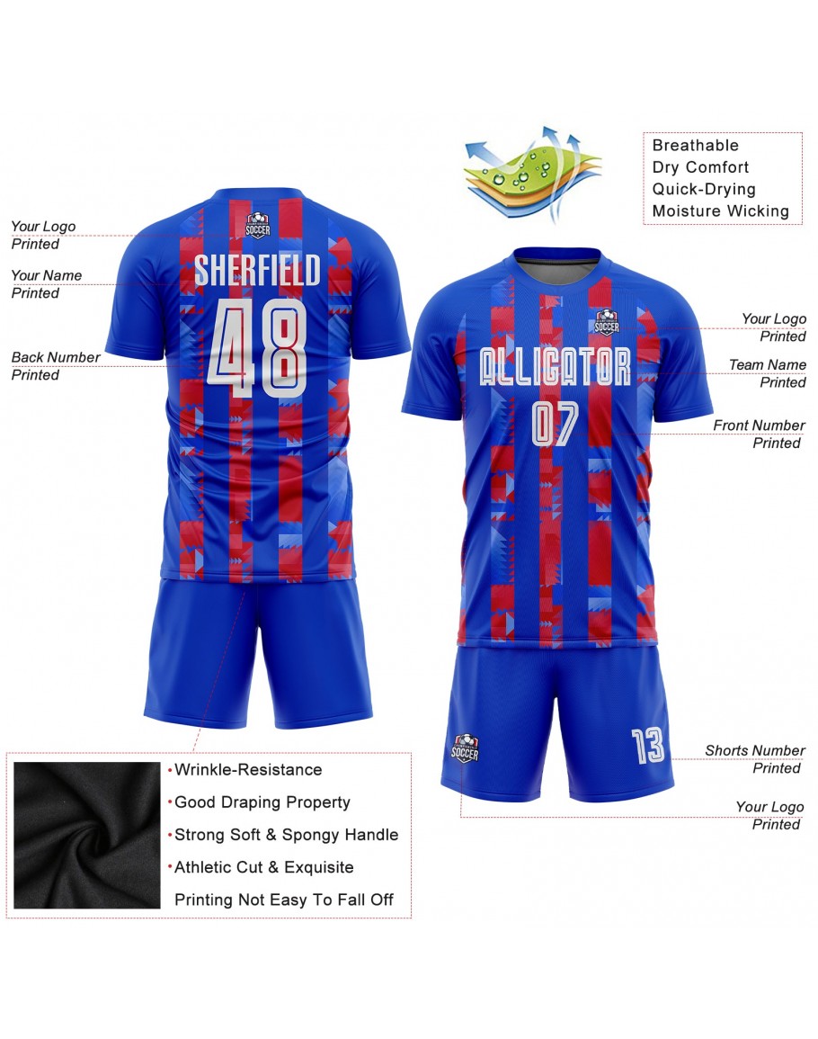 Custom Royal White-Red Home Sublimation Soccer Uniform Jersey