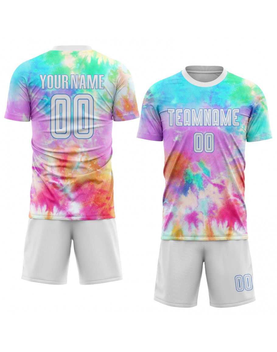 Best Pro Custom Tie Dye White-Light Blue Sublimation Soccer Uniform Jersey