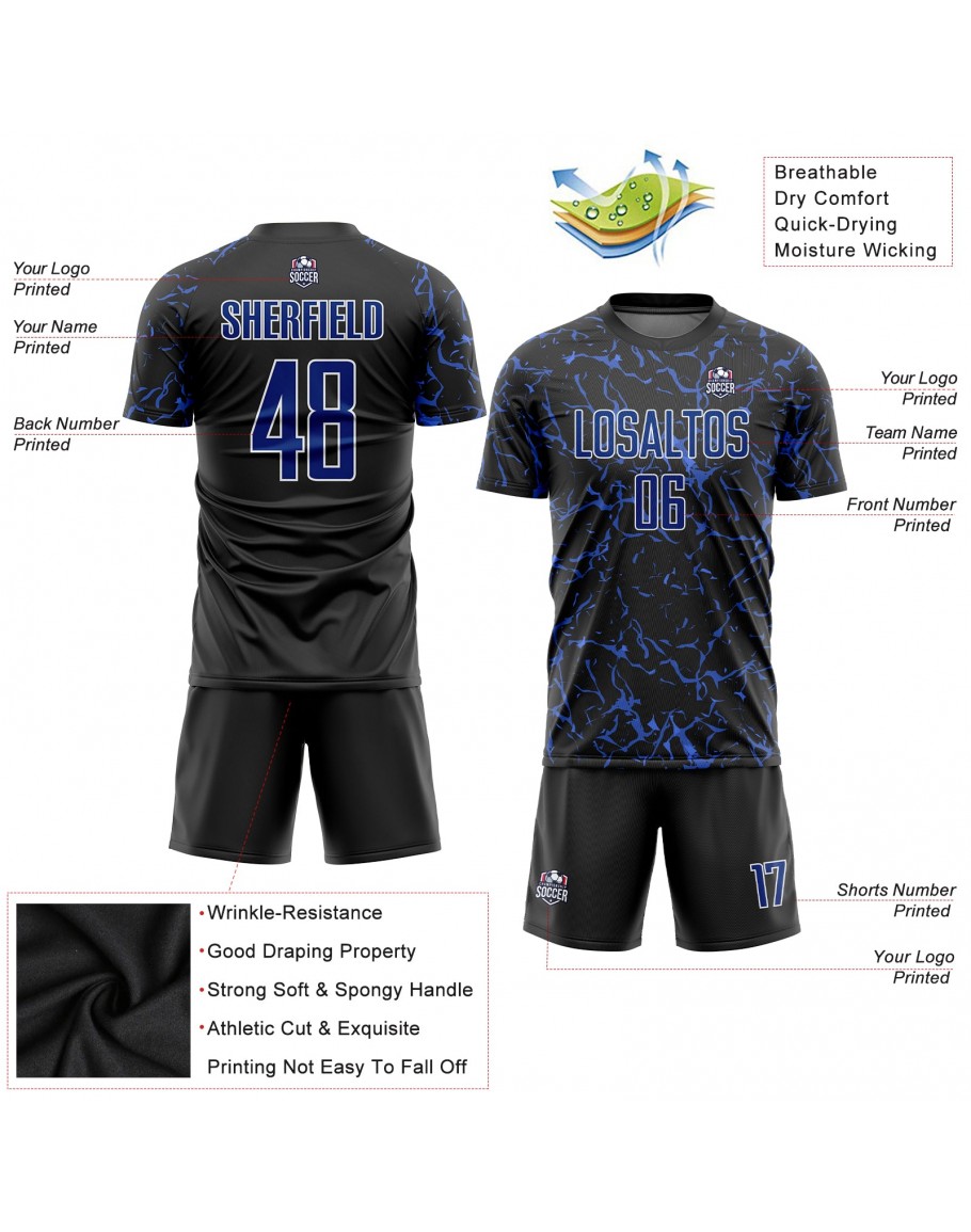 Best Pro Custom Black Royal-White Sublimation Soccer Uniform Jersey