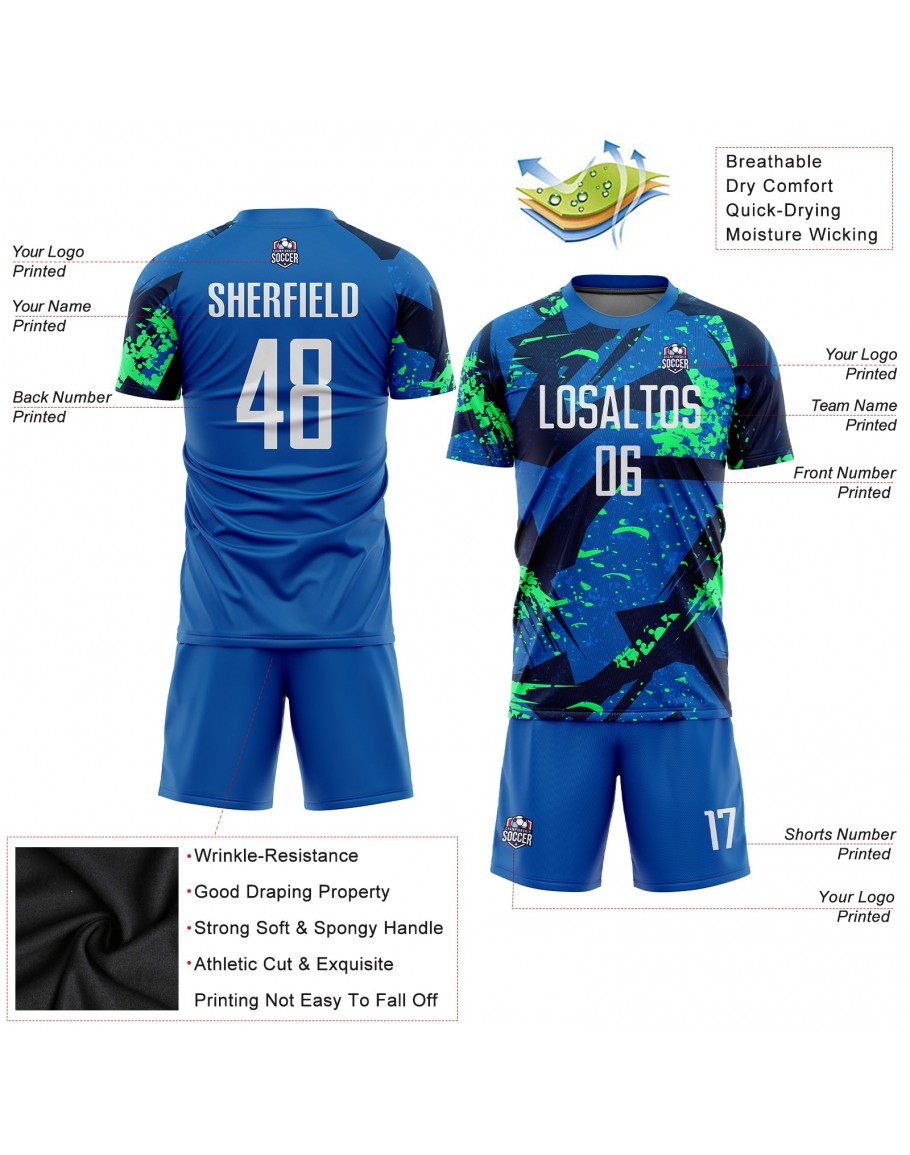 Custom Royal White-Neon Green Sublimation Soccer Uniform Jersey