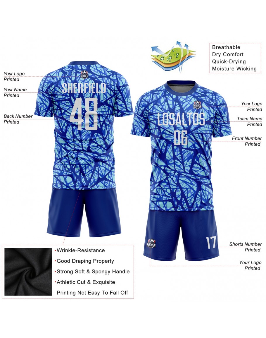 Custom Royal White-Light Blue Sublimation Soccer Uniform Jersey