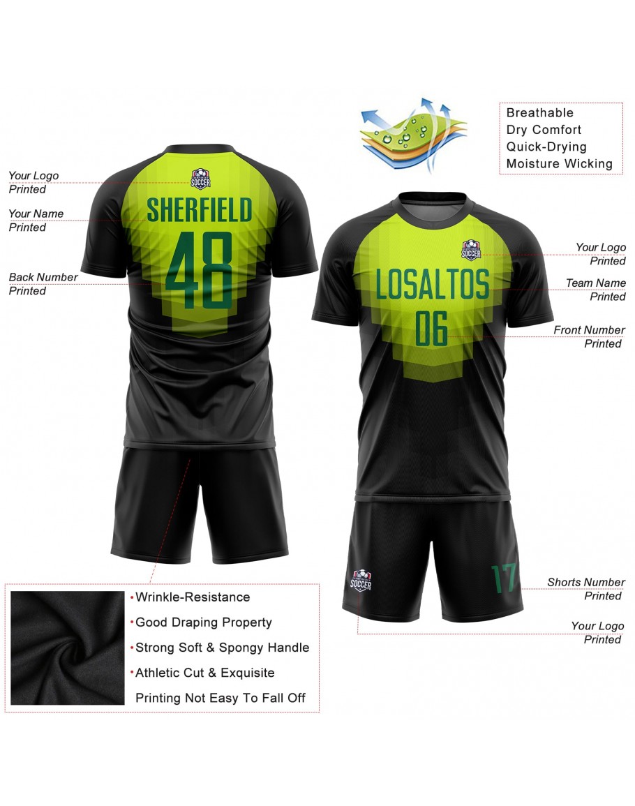 Best Pro Custom Black Kelly Green Sublimation Soccer Uniform Jersey